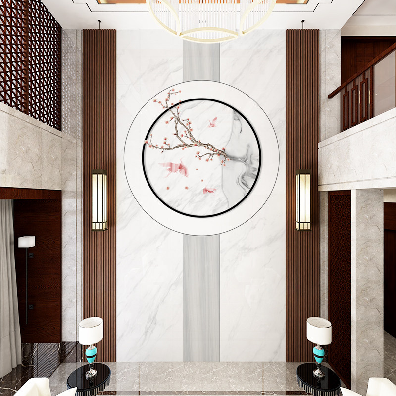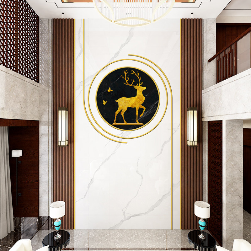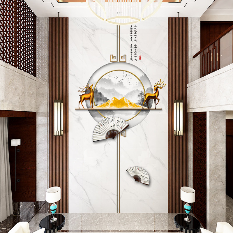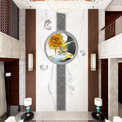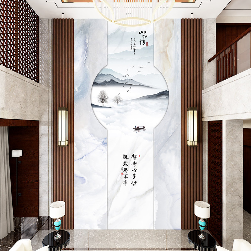 复式别墅自建房客厅岩板背景墙中空挑高楼中楼护墙板瓷砖电视墙砖