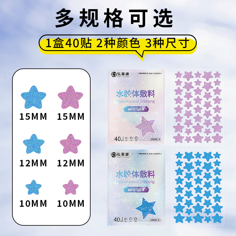 彩色星星水胶体豆豆贴医用净豆神器豆痕遮暇人工皮粉色痘痘创口贴