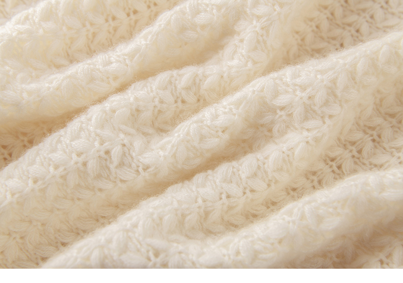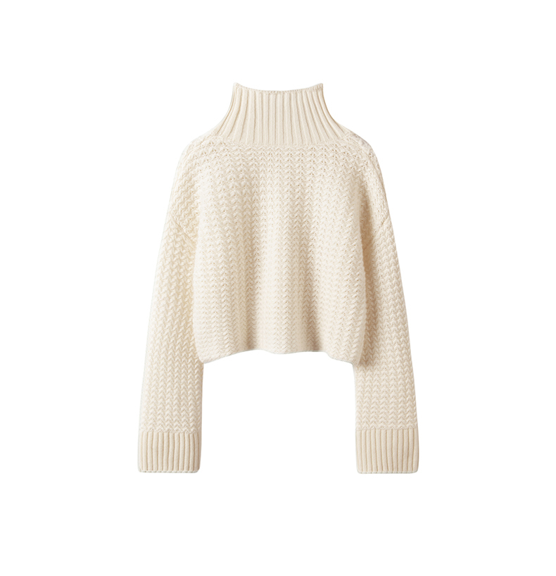 时髦感拉满了~2024新款藏蓝色编镂空编织阔袖高领100%羊绒毛衣女
