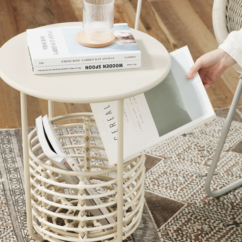 mwh曼好家藤编茶几小型储物简约圆形边几客厅沙发角几边柜置物架