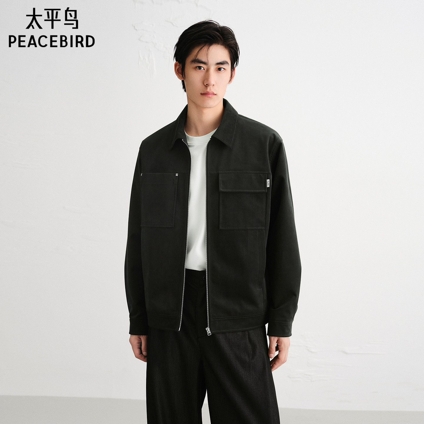 太平鸟男装翻领通勤行政夹克25秋新款时尚休闲外套宽松商务茄克