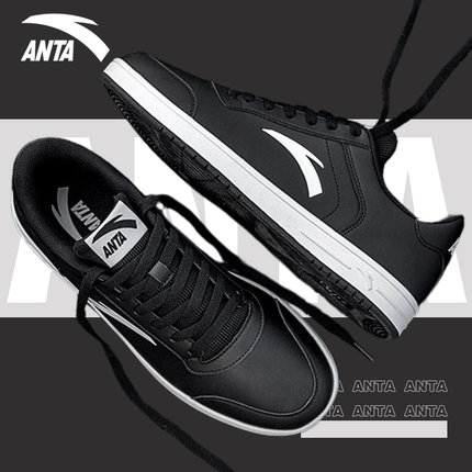安踏男鞋黑色板鞋官方正品春季防滑运动休闲鞋子男皮面百搭平底鞋