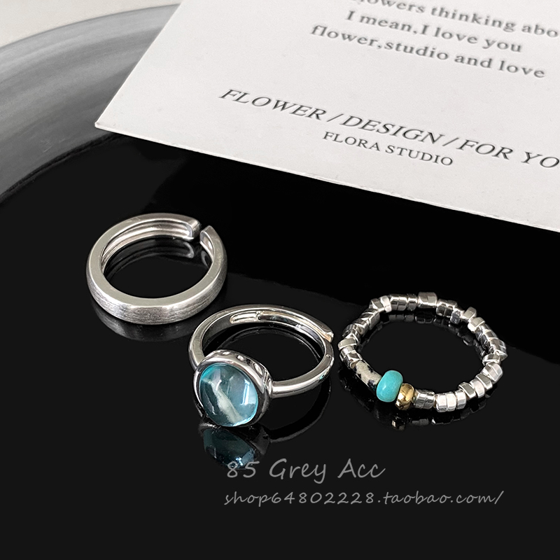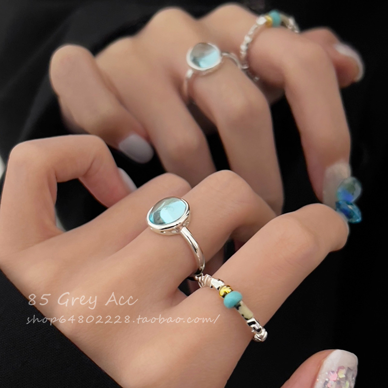 碎银子海蓝宝石开口戒指套装女ins冷淡风网红指环气质百搭食指戒