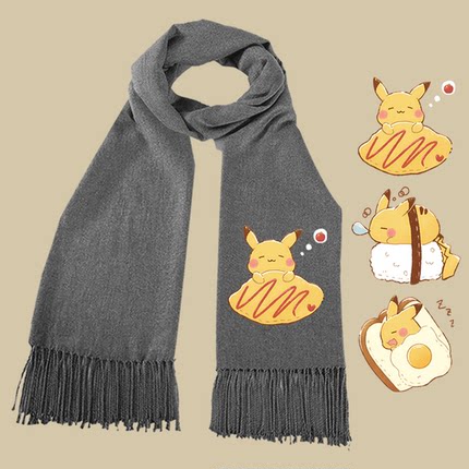 可爱皮卡丘寿司周边男女休闲百搭仿羊绒新款卡通百搭冬季保暖围巾