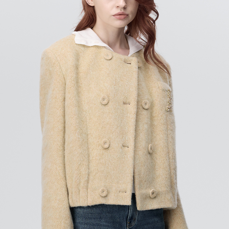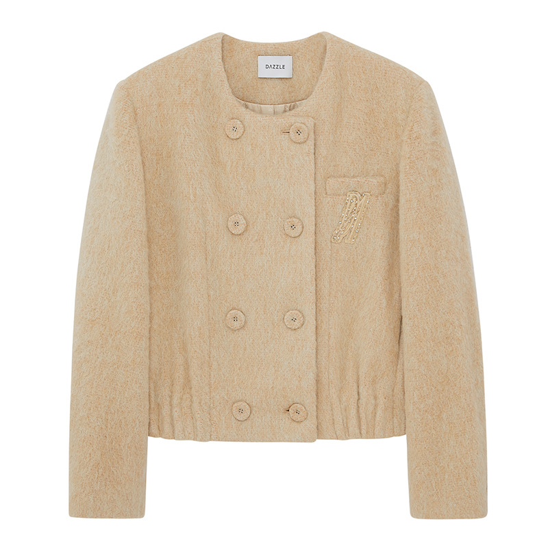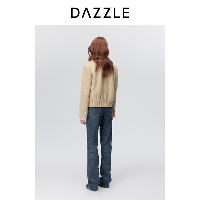 DAZZLE地素奥莱短大衣冬千金风钉珠水钻徽标毛呢外套女