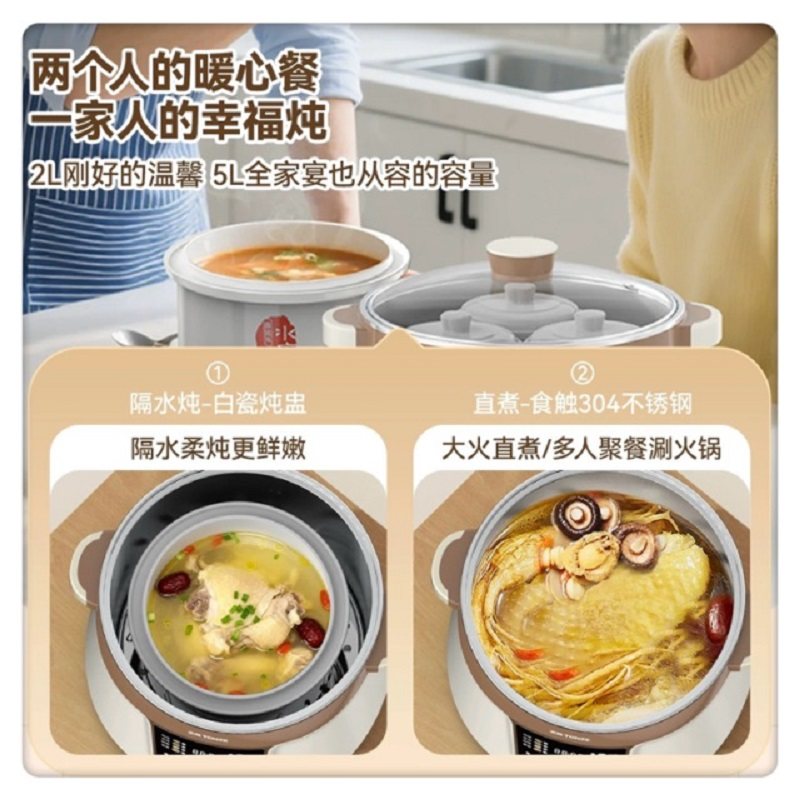 天际智能不锈钢电炖锅1-3人陶瓷隔水炖盅煮粥煲汤燕窝盅1.8L新品