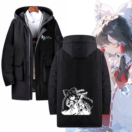 东方project博丽灵梦卡通动漫男女休闲百搭宽松可定制带帽羽绒服