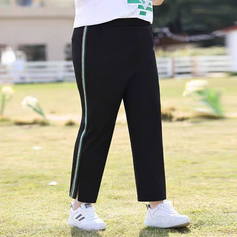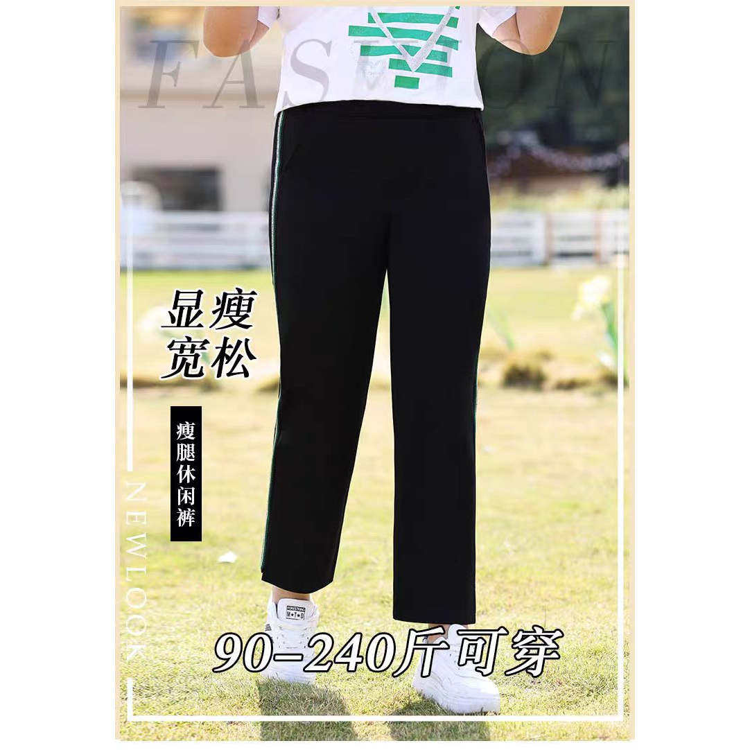 大码300斤冰丝哈伦裤女夏季薄款九分裤高腰显瘦胖MM200斤开叉休闲