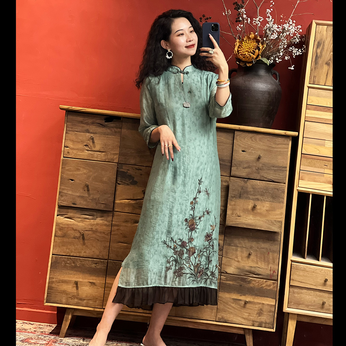 【羊在在】夏季重工刺绣修身显瘦中式改良中连衣裙女L779