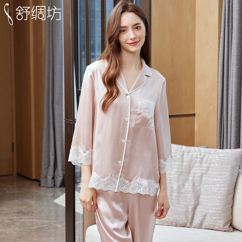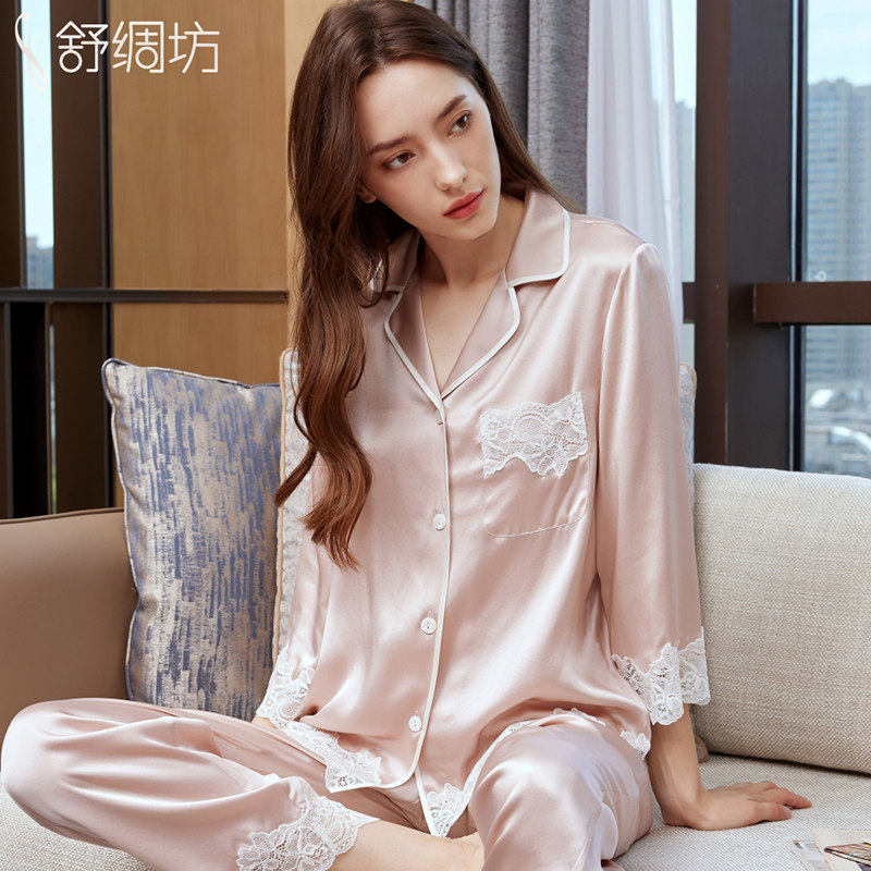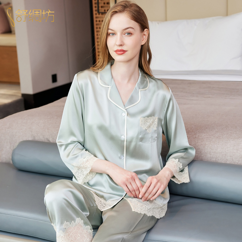 舒绸坊品牌重磅真丝睡衣女士春秋高级感桑蚕丝长袖蕾丝家居服套装