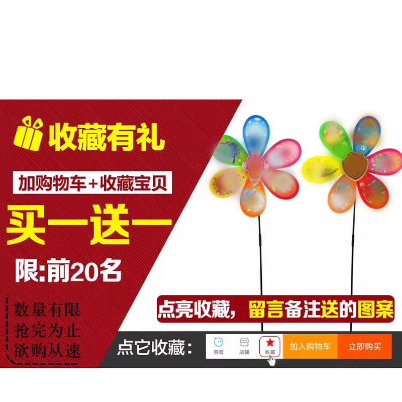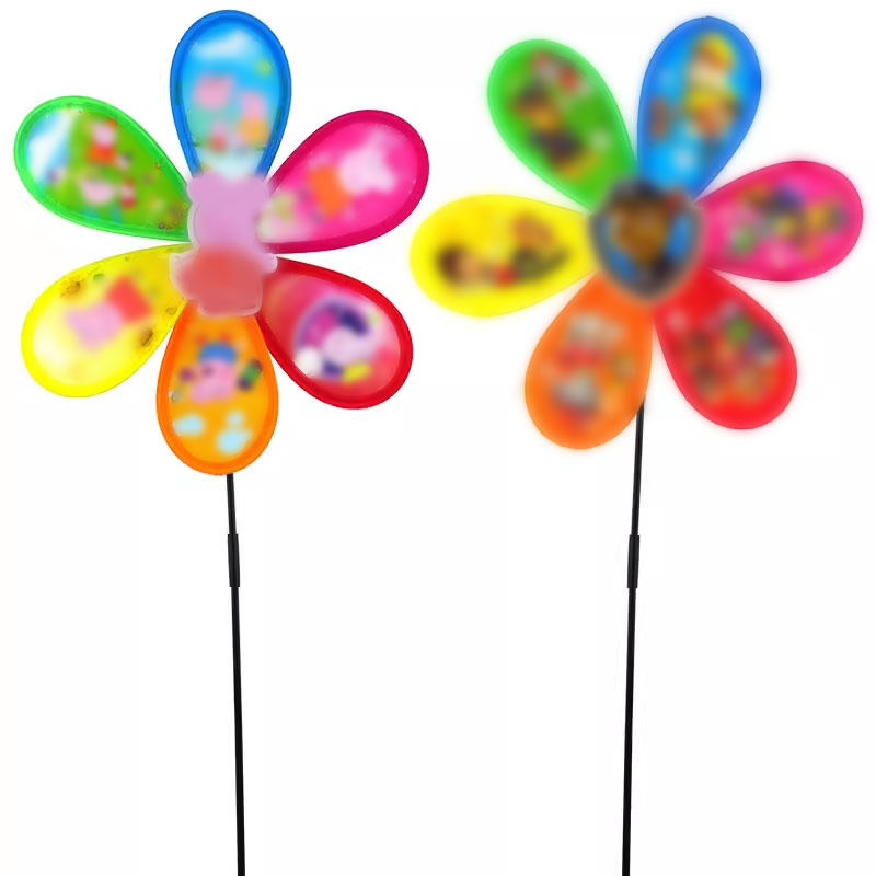儿童户外大款风车玩具大号单层布艺风车加长装饰塑料网红风车六彩