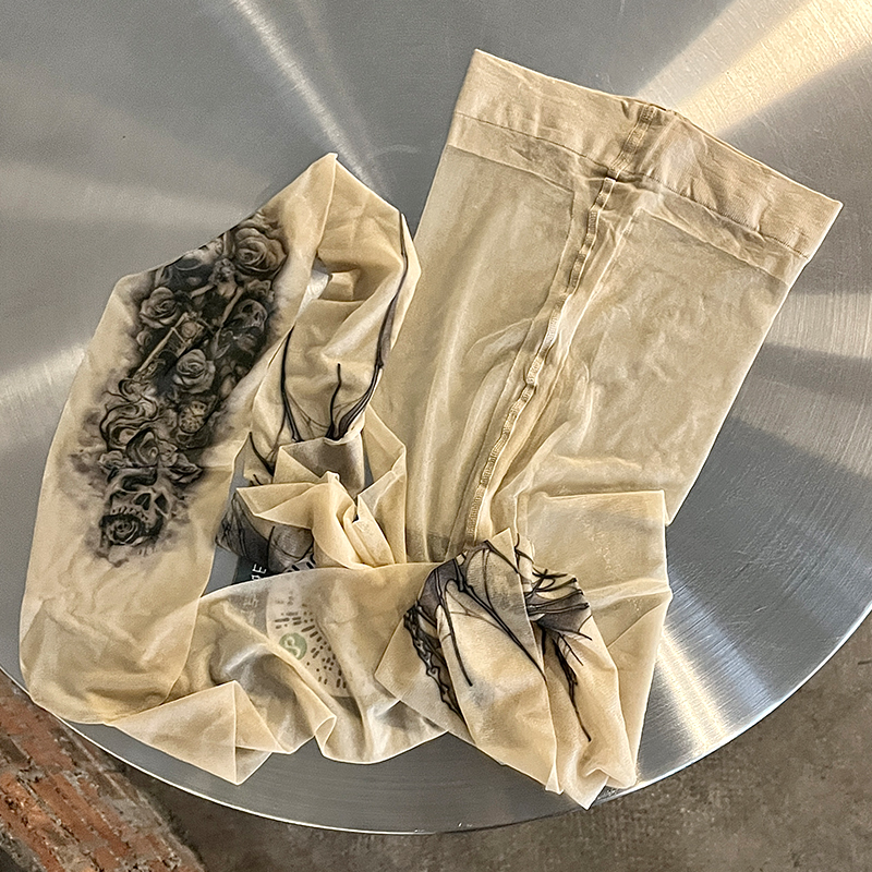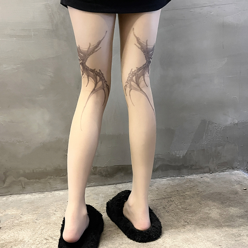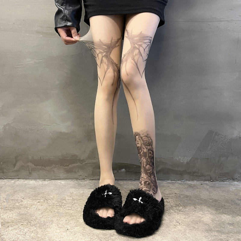 小众纹身丝袜暗黑风羽翼骷髅头印花连裤袜肤色打底袜性感美腿袜子