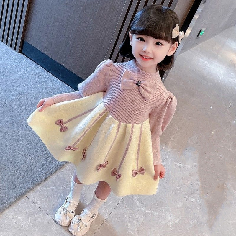 儿童生日礼服女童新年公主裙高端洋气秋冬季儿童装针织毛衣连衣裙
