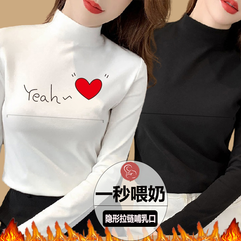 孕妇哺乳衣秋冬外出辣妈母乳上衣喂奶加绒保暖打底衣月子服秋衣