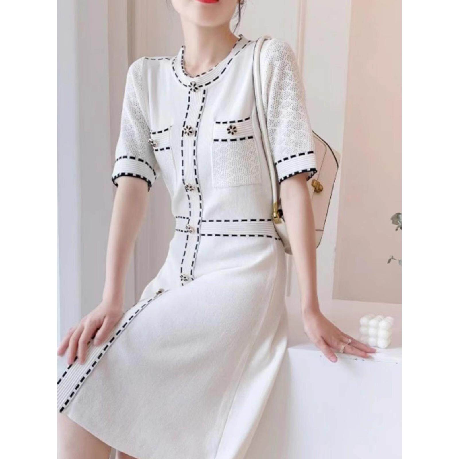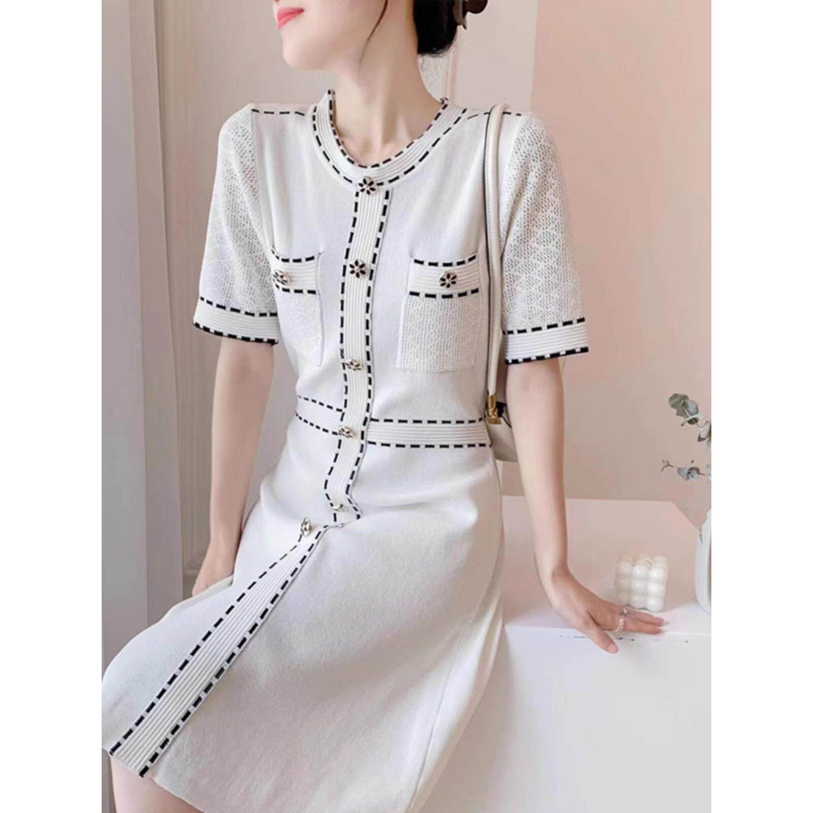 春装150cm显高女装矮个子XXXS加小码polo领短袖冰丝针织A字连衣裙