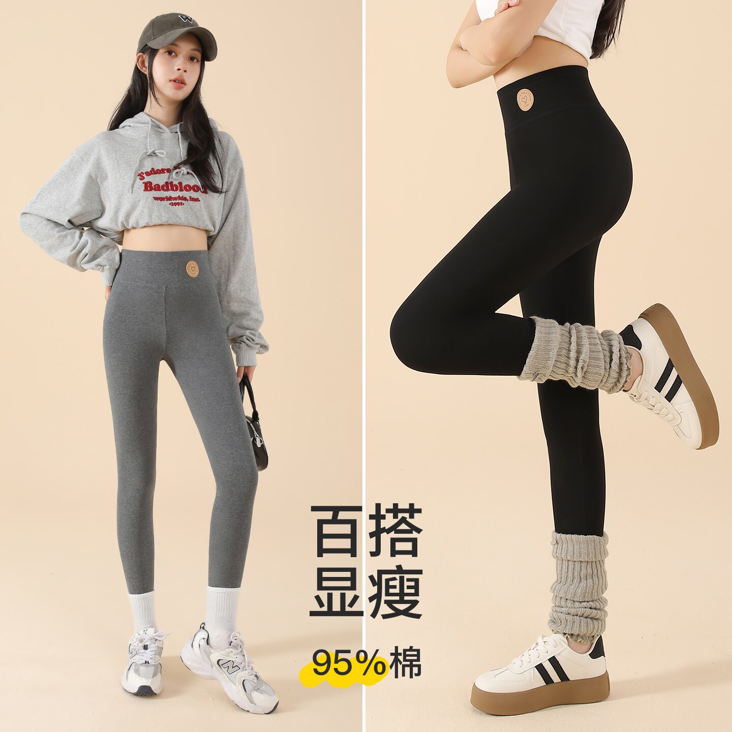 灰色打底裤女秋冬外穿2025新款加绒加厚黑色高腰秋裤小脚裤配裙子