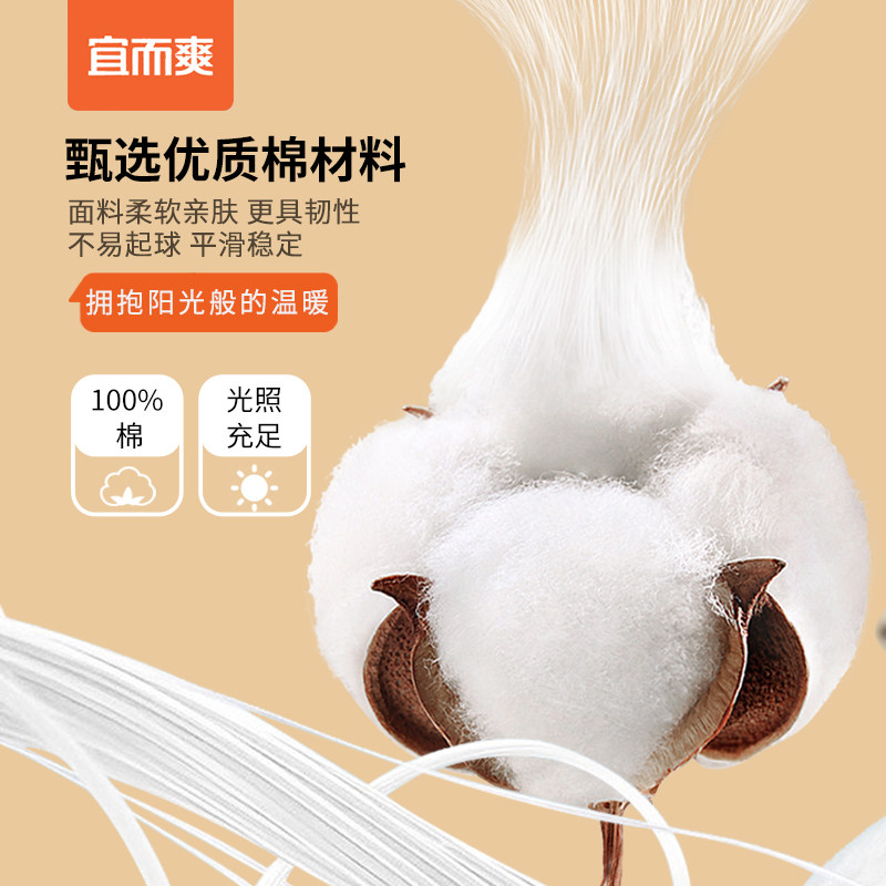 宜而爽女士三层夹棉加厚圆领|半高领保暖打底内衣秋冬棉毛衫上衣