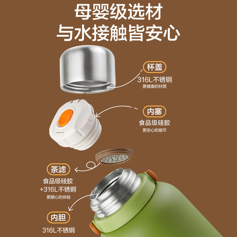 苏泊尔保温杯大容量水杯子316L不锈钢杯子泡茶杯男女户外便携水壶