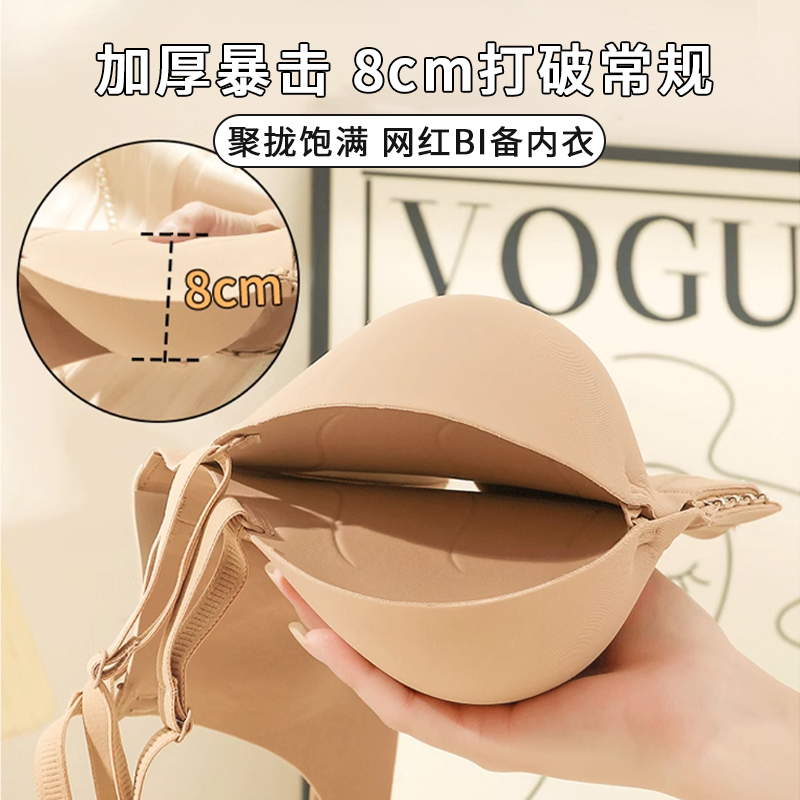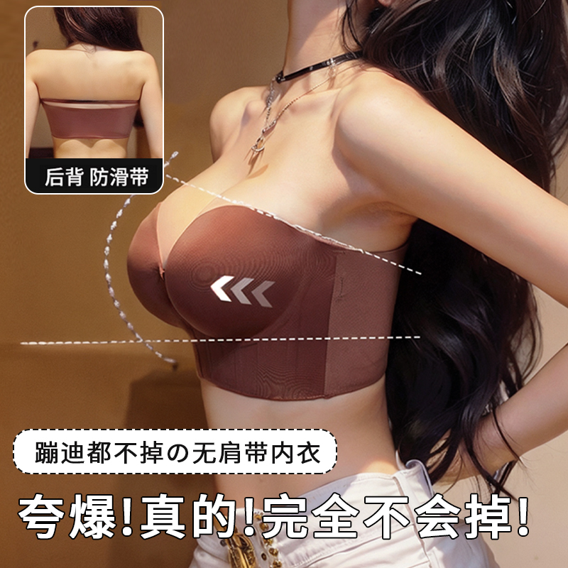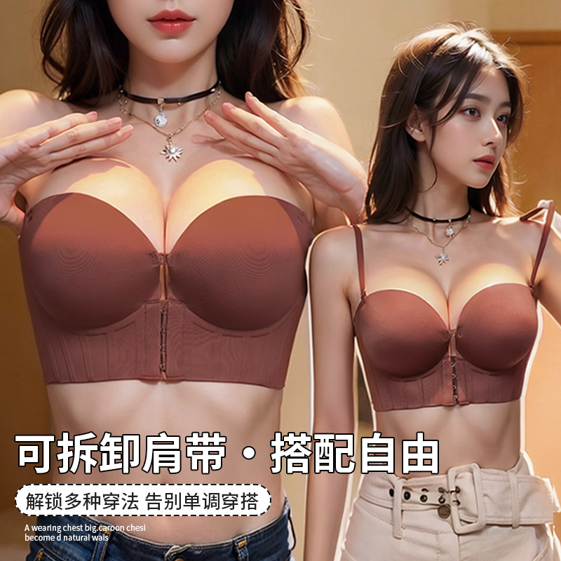 8超厚杯前扣无肩带内衣女小胸聚拢显大防滑无痕防走光文抹胸罩