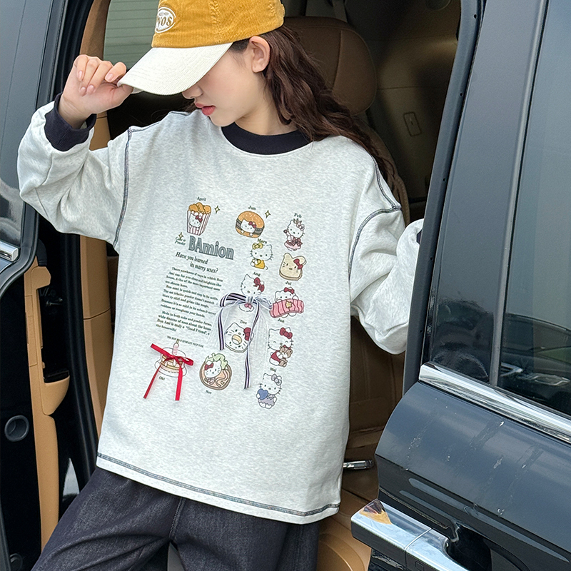 女童加绒卫衣2025新款秋冬装儿童蝴蝶结加厚上衣大童休闲打底衫潮