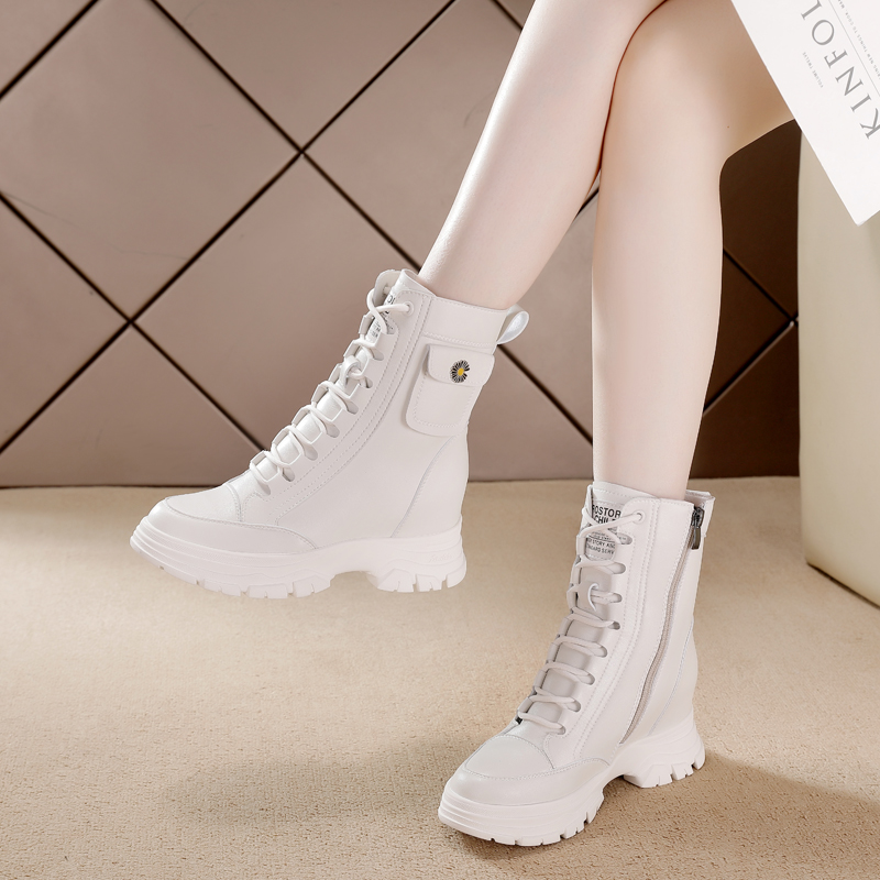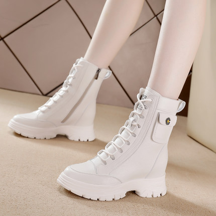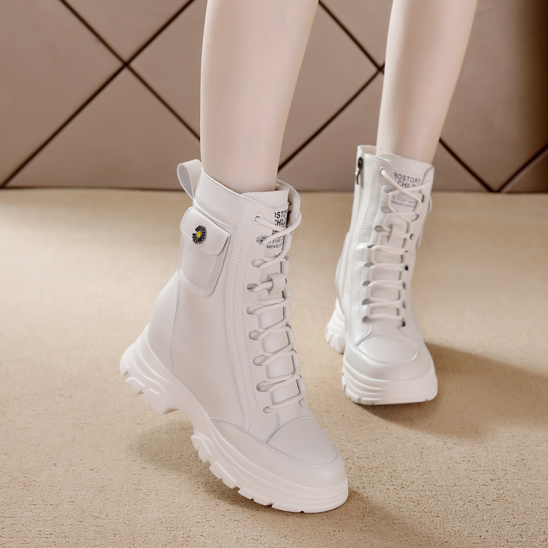 马丁靴子女2025秋冬新款英伦风真皮爆款显瘦厚底小个子内增高短靴