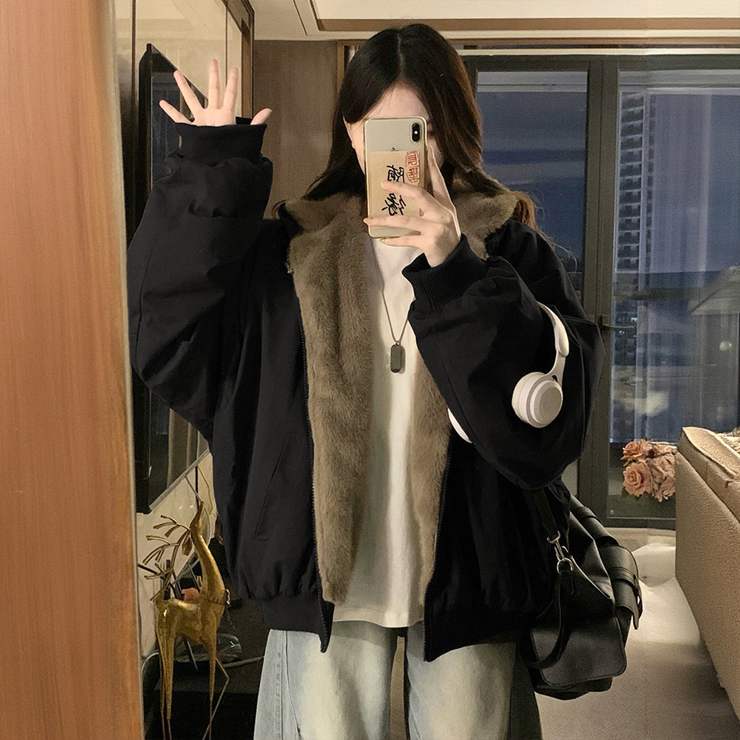 300斤特大码女装黑色连帽双面穿棉服女胖mm时髦百搭加厚保暖外套