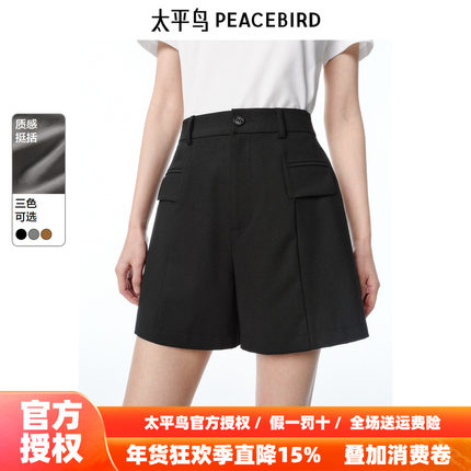 太平鸟高腰阔腿休闲中短裤2025年秋季新款A字通勤黑色西装短裤子