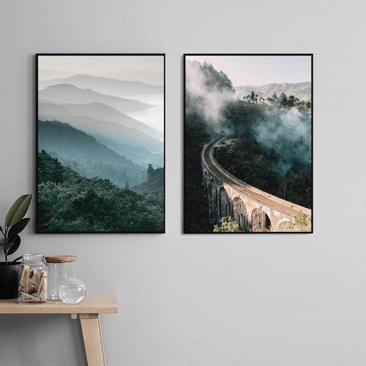 北欧自然风光摄影装饰画九拱桥森林远山咖啡厅办公室艺术挂画壁画