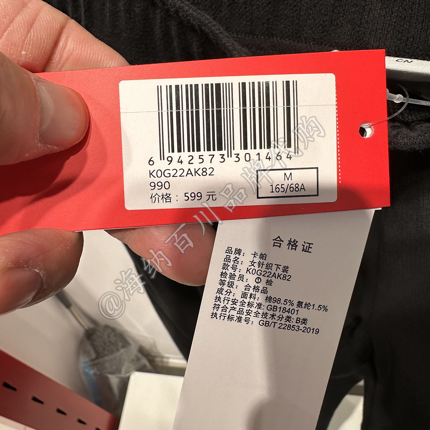 kappa女款休闲针织弯刀长裤