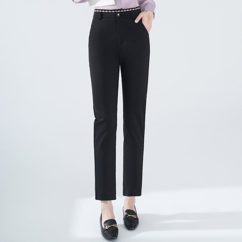 休闲西装裤女春秋高腰九分黑色大码裤子200斤胖mm显瘦小脚哈伦裤