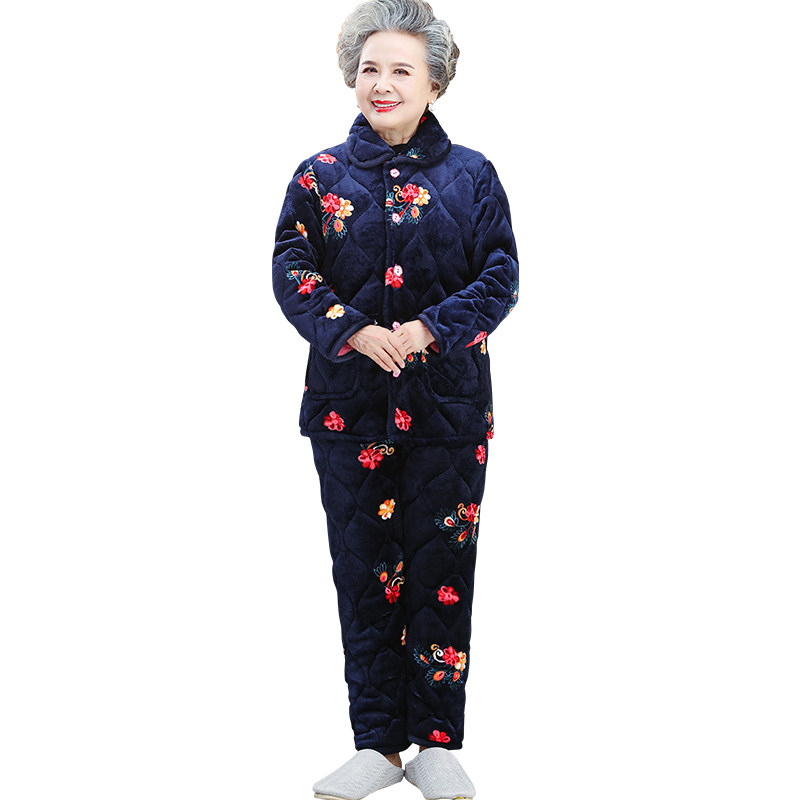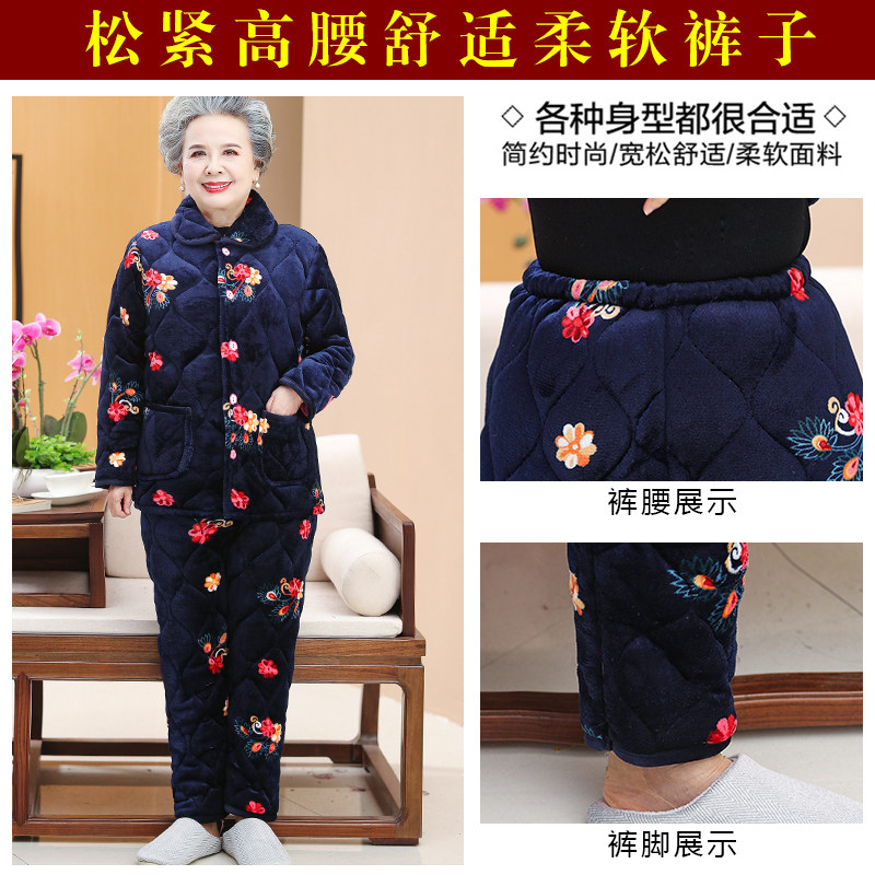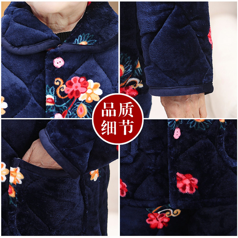 奶奶装冬装家居服三层加厚老太太棉袄妈妈睡衣法兰绒老年人套装女