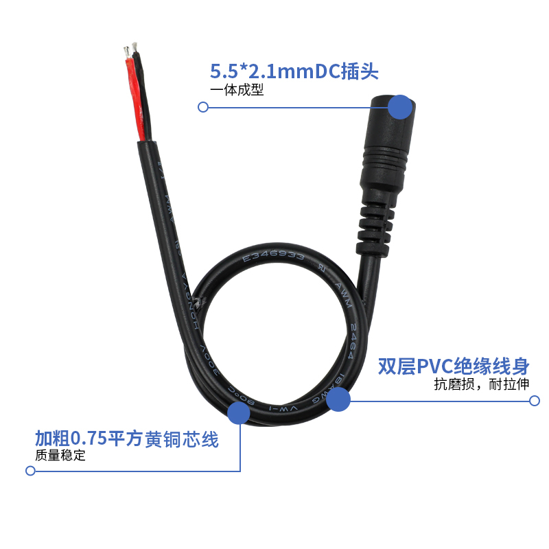 监控电源DC延长线公母插头5.5*2.5 2.1mm插座摄像头适配器加长线