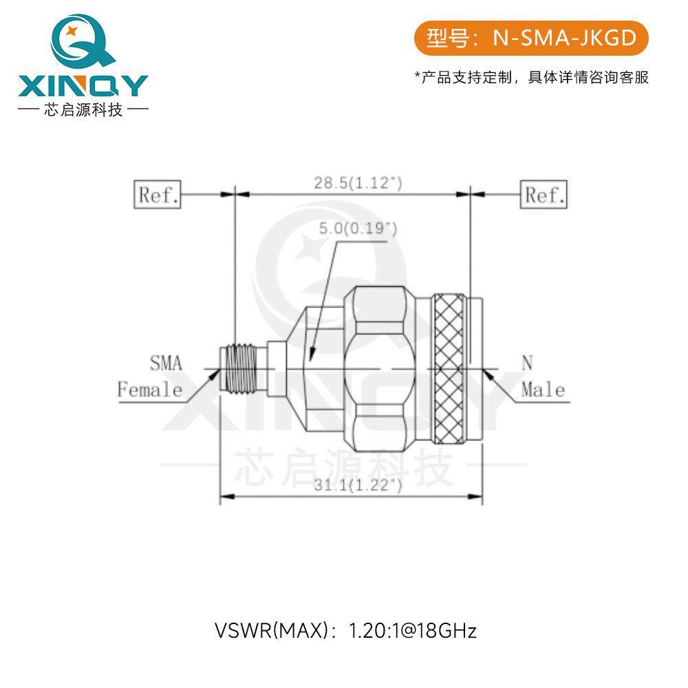 XINQYN公转SMA母不锈钢转接头18g射频转接器50欧姆同轴射频头