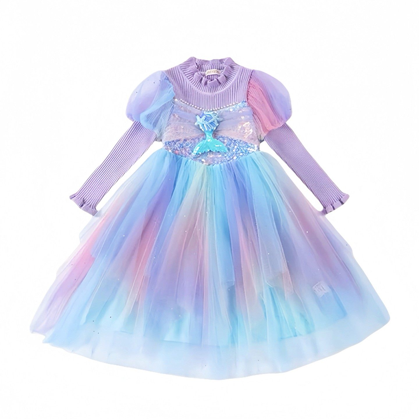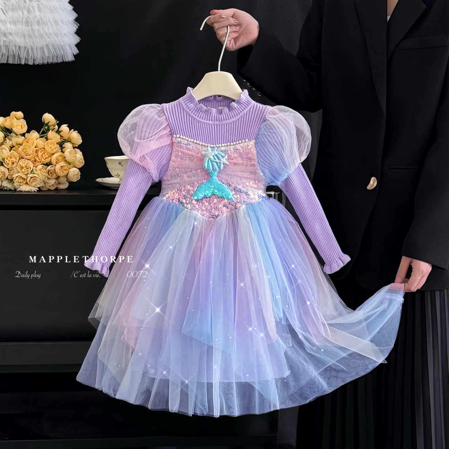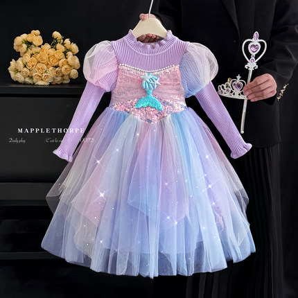美人鱼公主裙女童秋冬款小女孩生日礼服连衣裙儿童渐变网纱蓬蓬裙