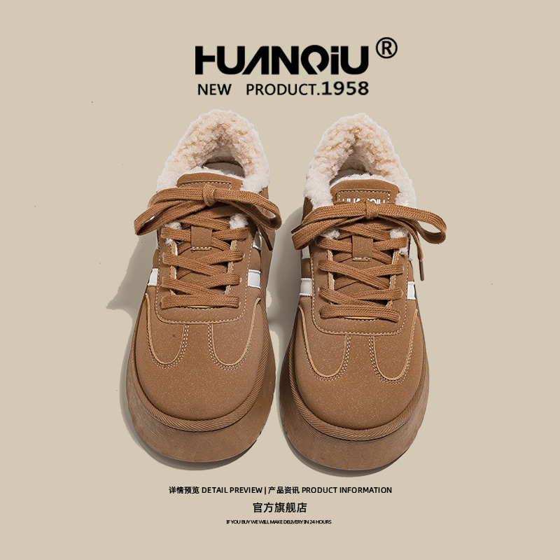 环球冬季加绒加厚保暖雪地棉鞋女2025秋冬新款德训鞋子厚底小白鞋