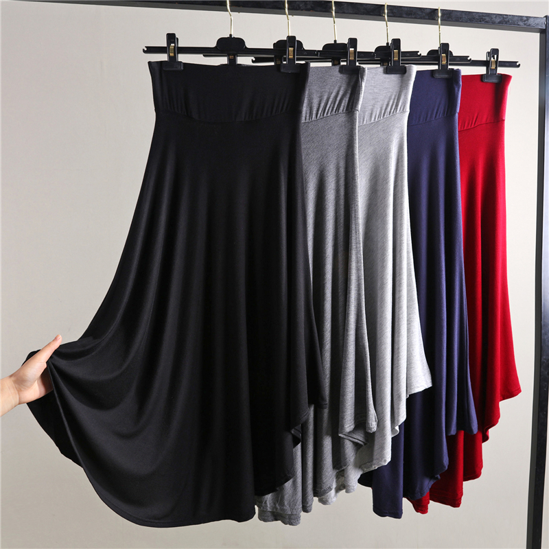 夏季薄款不规则大摆半身裙女莫代尔打底裙显瘦高腰a字裙坠感长裙