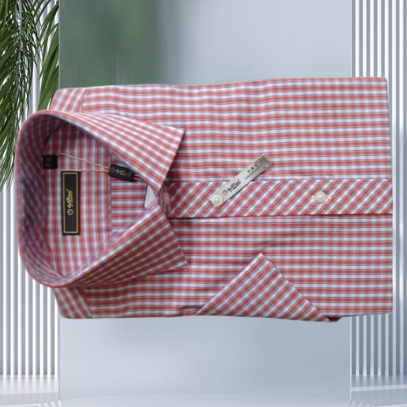 金利来男装短袖衬衫夏季格子标准纯棉商务正装MSSE098-41314-42