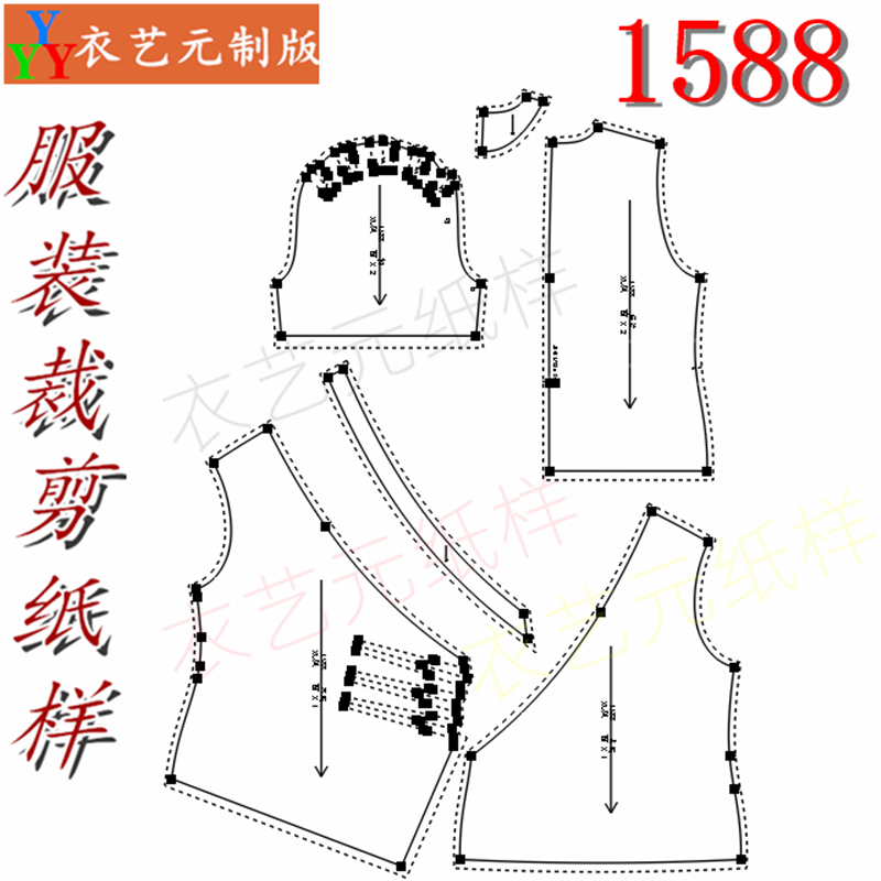 1588衣服装裁剪图纸样板新款韩版V领短袖女小衫气质衬衣女装