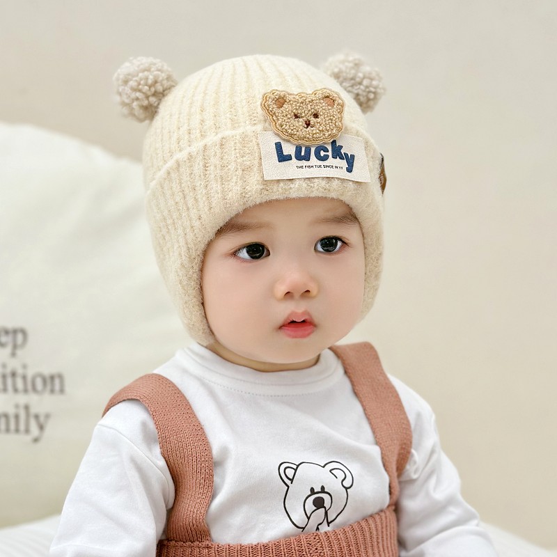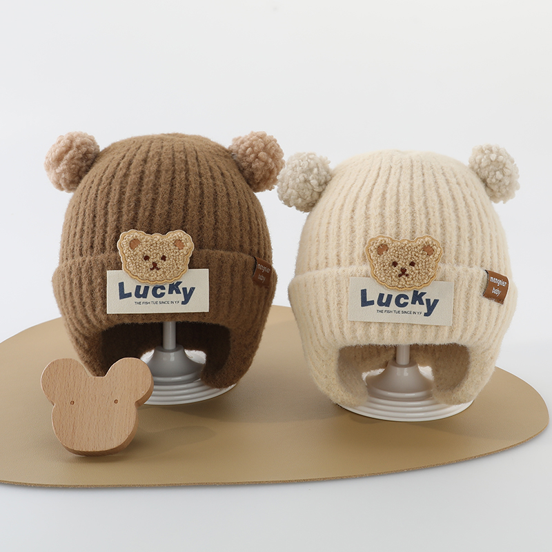 婴儿帽子秋冬季护耳帽可爱超萌针织保暖加厚婴幼儿男女宝宝毛线帽