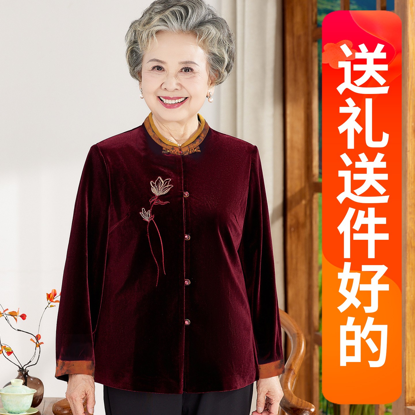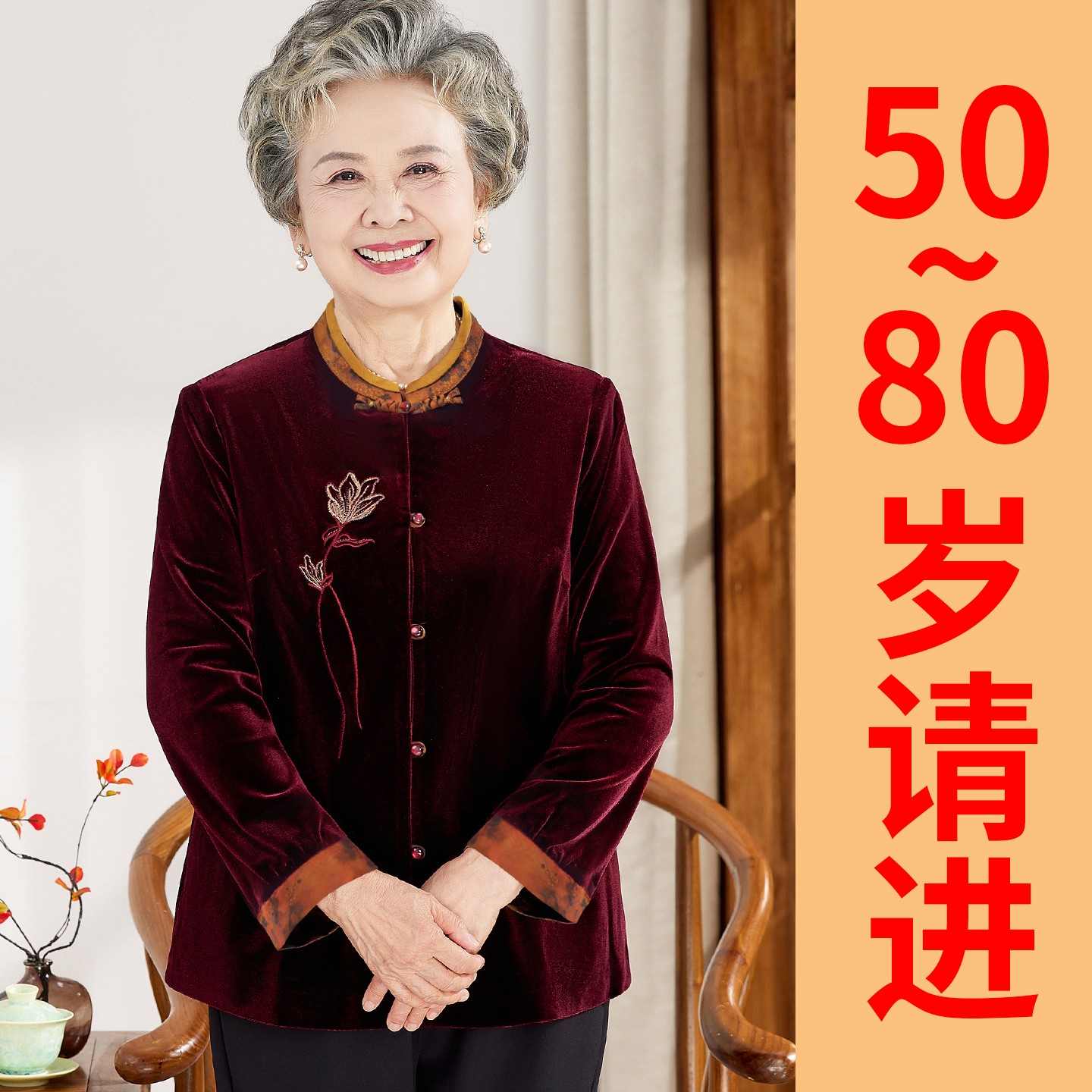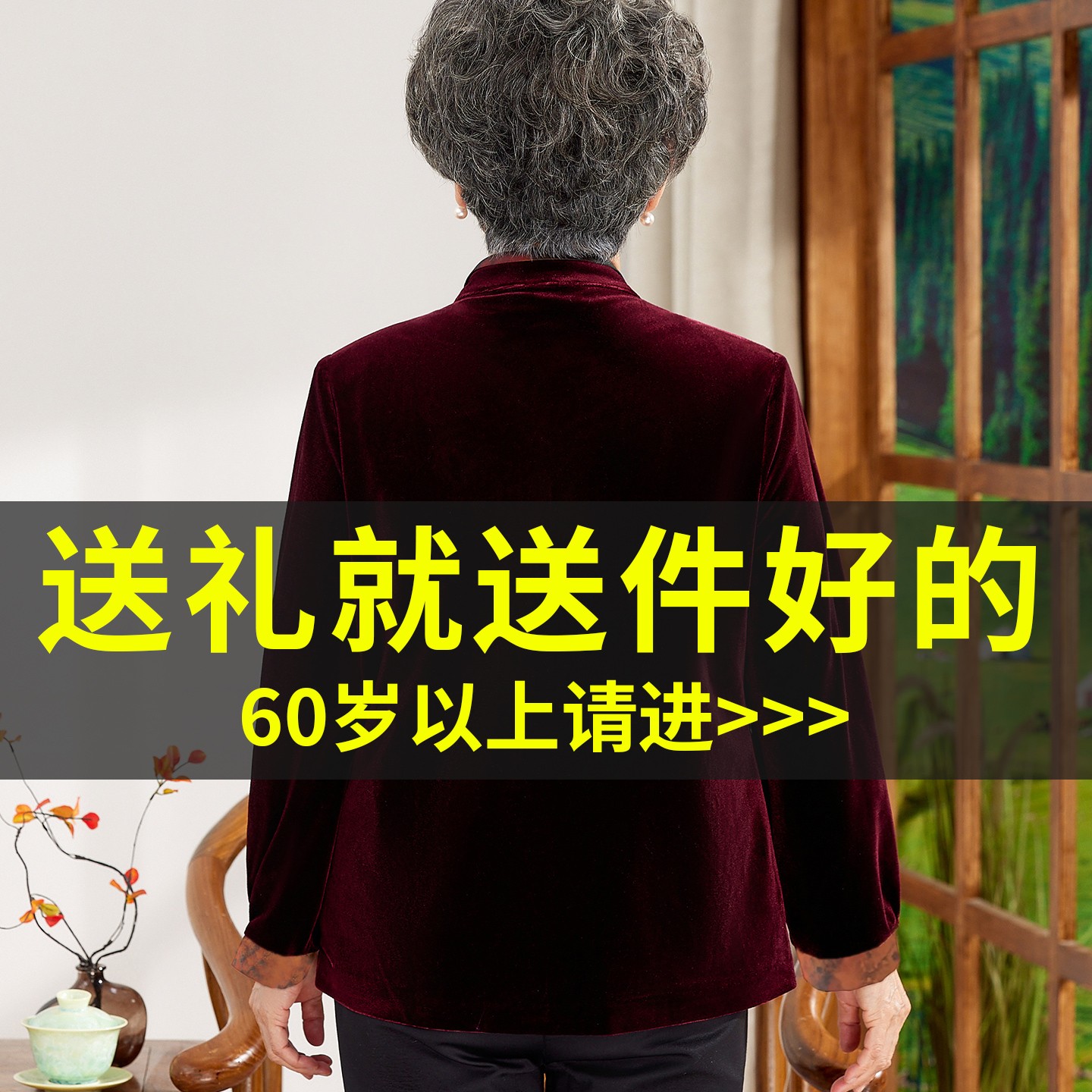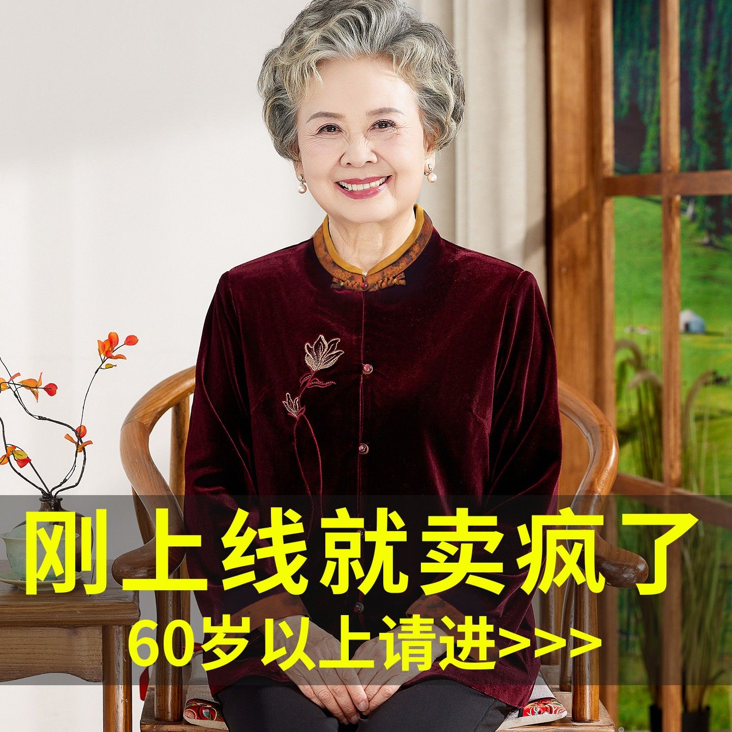 妈妈秋装金丝绒衬衣中老年宽松女装衬衫长袖老人衣服奶奶遮肉上衣