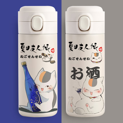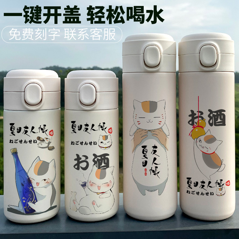 夏目友人帐可爱动漫弹跳式真空保温杯猫咪老师周边定制日系水杯子