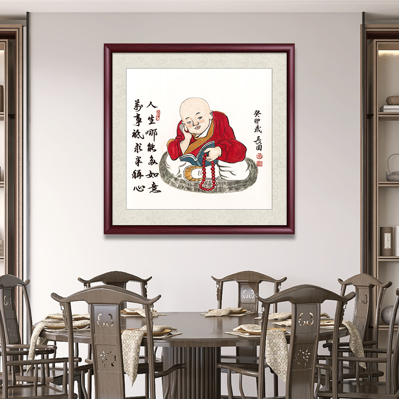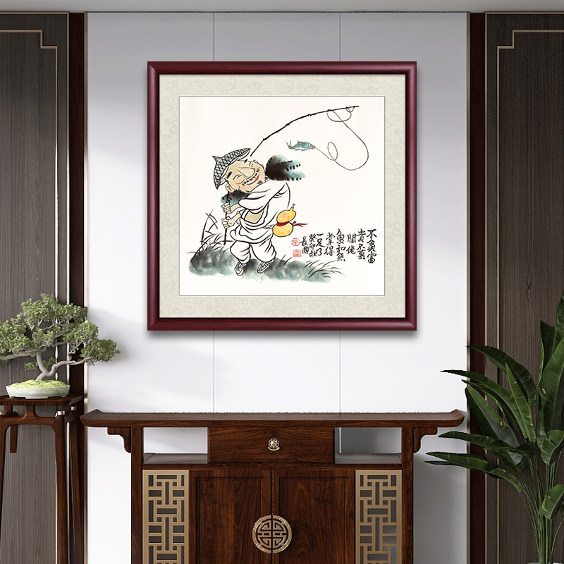 有茶大富贵手绘入户玄关装饰画斗方挂画办公室墙画客厅茶室字画