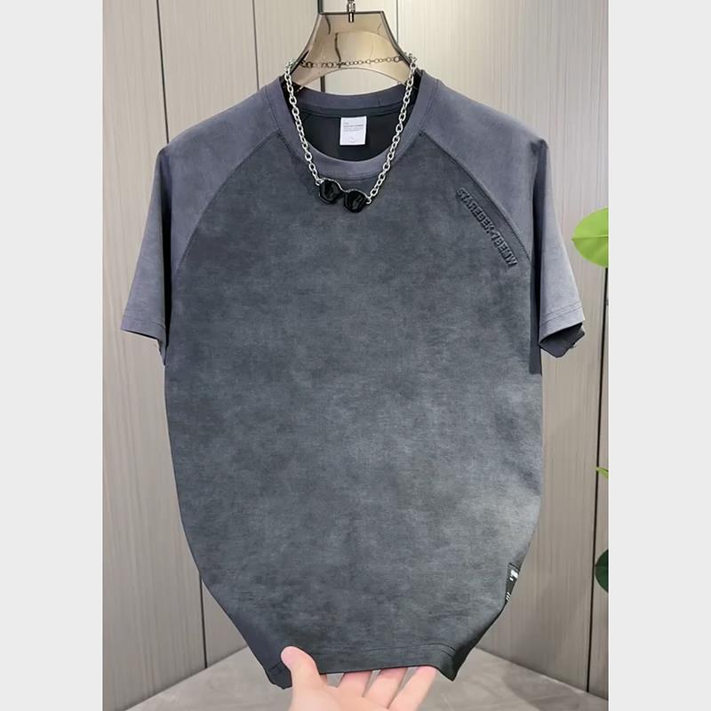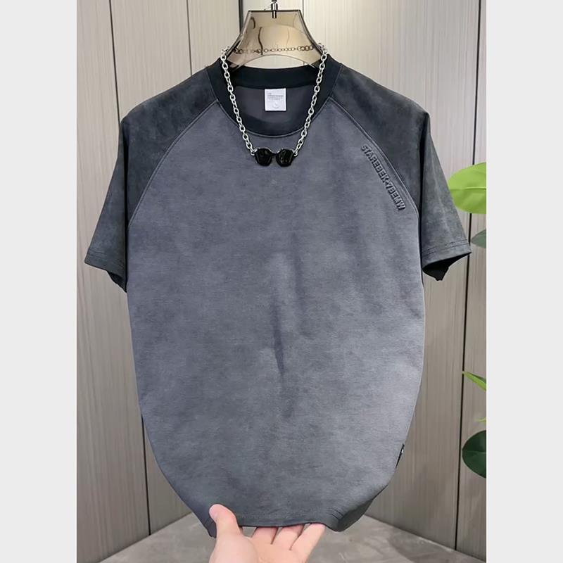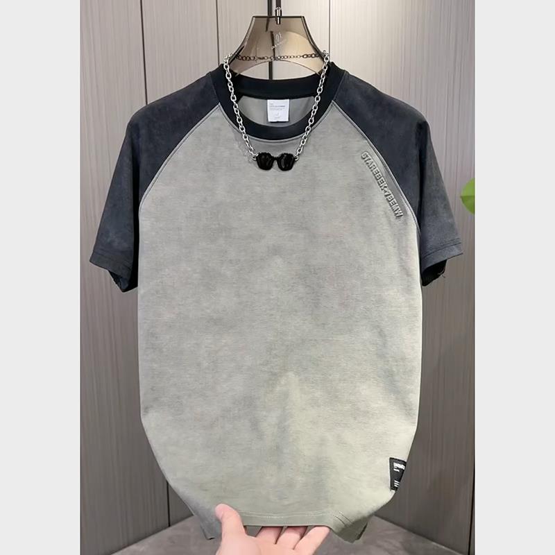 2025夏季新款时尚撞色圆领短袖扎染休闲百搭半袖男士字母钢印T恤