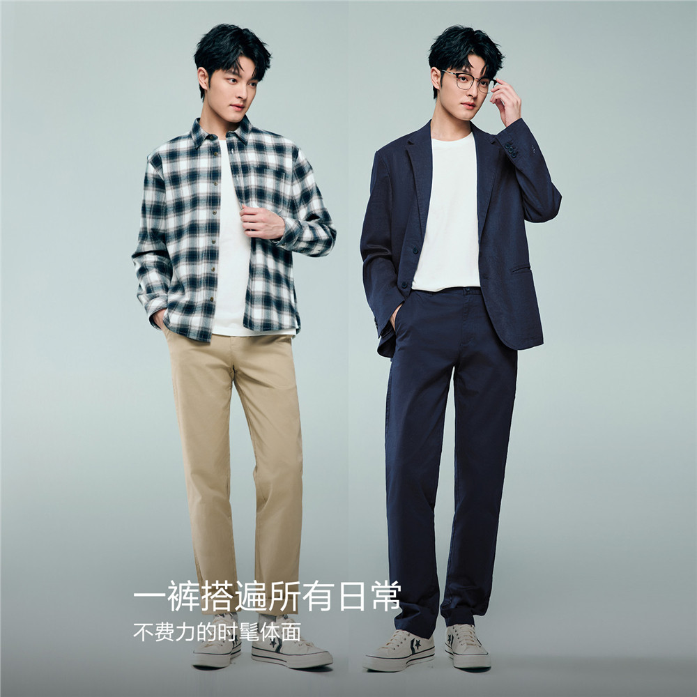 佐丹奴裤子男新款弹力莱卡棉修身卡其裤中腰薄款休闲长裤13115008
