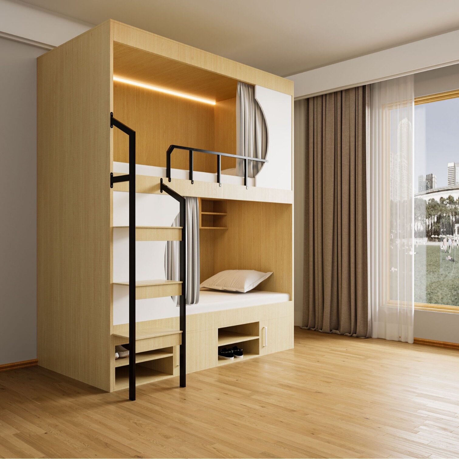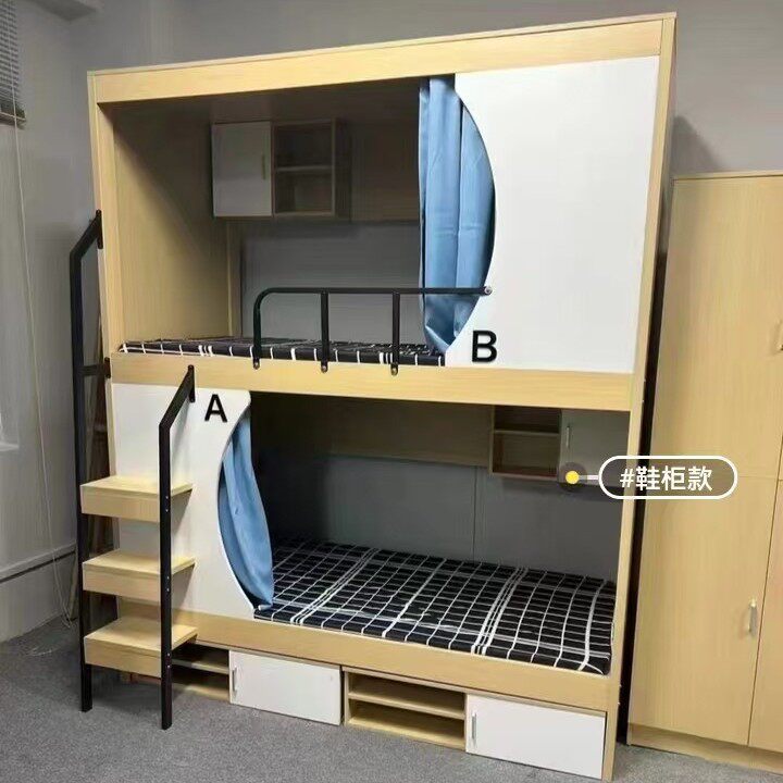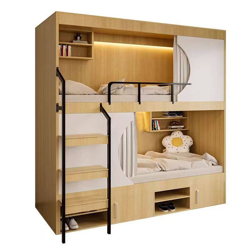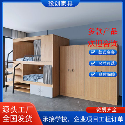 厂家直销学校太空上下床员工宿舍双层床公寓青旅双人床实木柜子