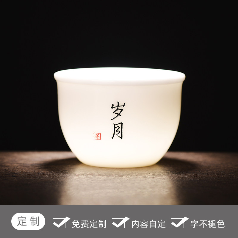 百家姓私人定制品茗杯个人杯陶瓷德化白瓷羊脂玉单杯功夫茶杯刻字