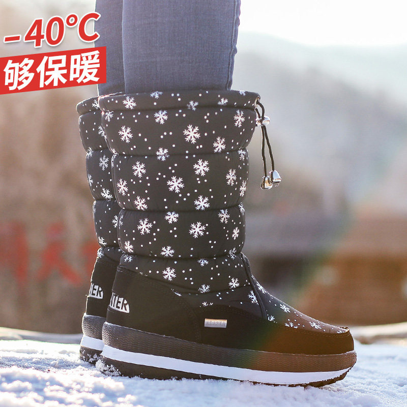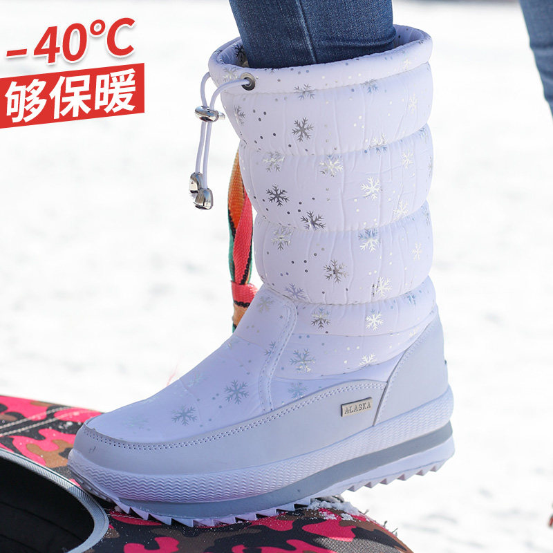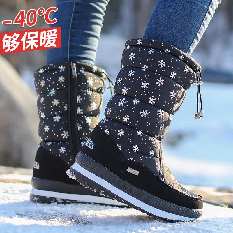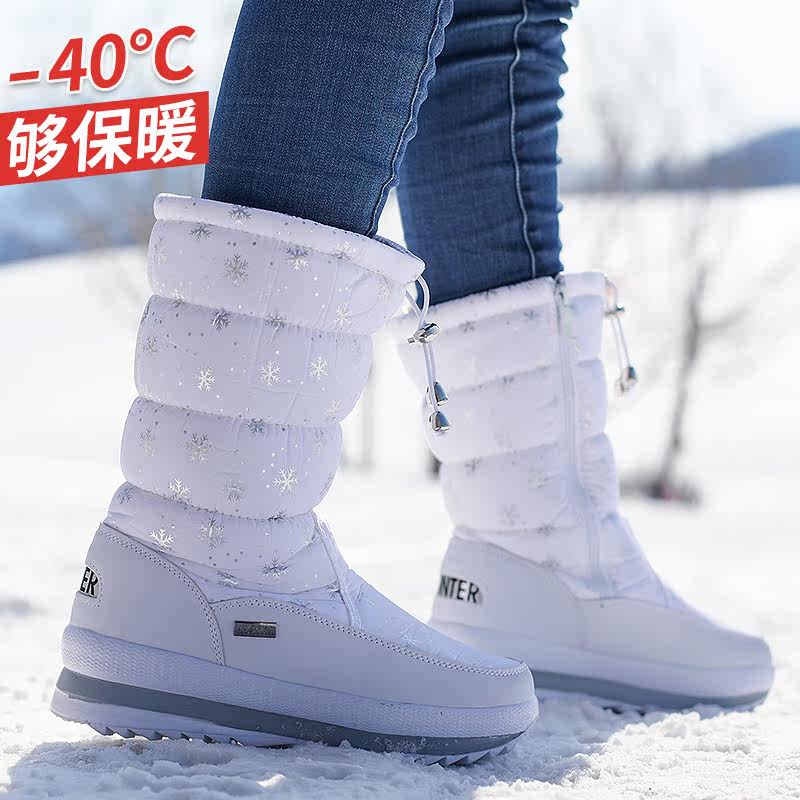 2025年防滑白色女鞋冬季加绒加厚棉靴子拉链保暖雪地靴东北大棉鞋