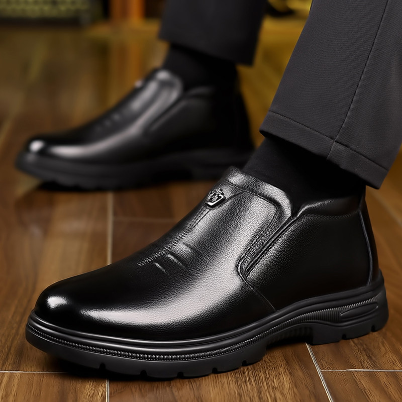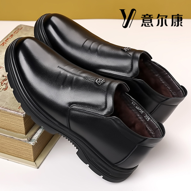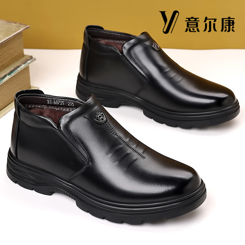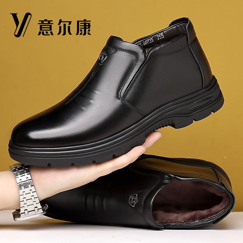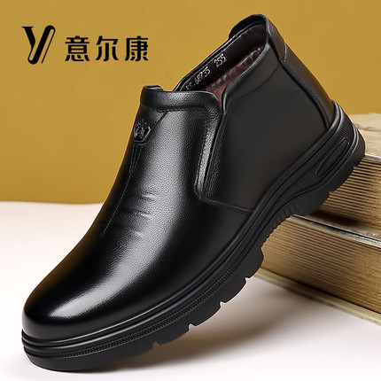 意尔康男鞋真皮冬季加绒保暖羊毛高帮棉鞋软牛皮防滑商务休闲皮鞋