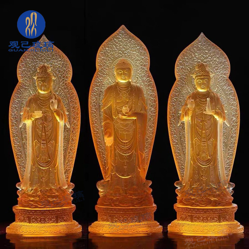 琉璃佛像摆件西方三圣阿弥陀佛大势至观音菩萨观世音家居中式供奉