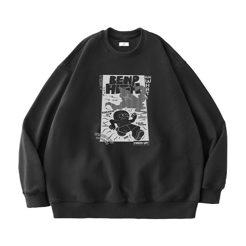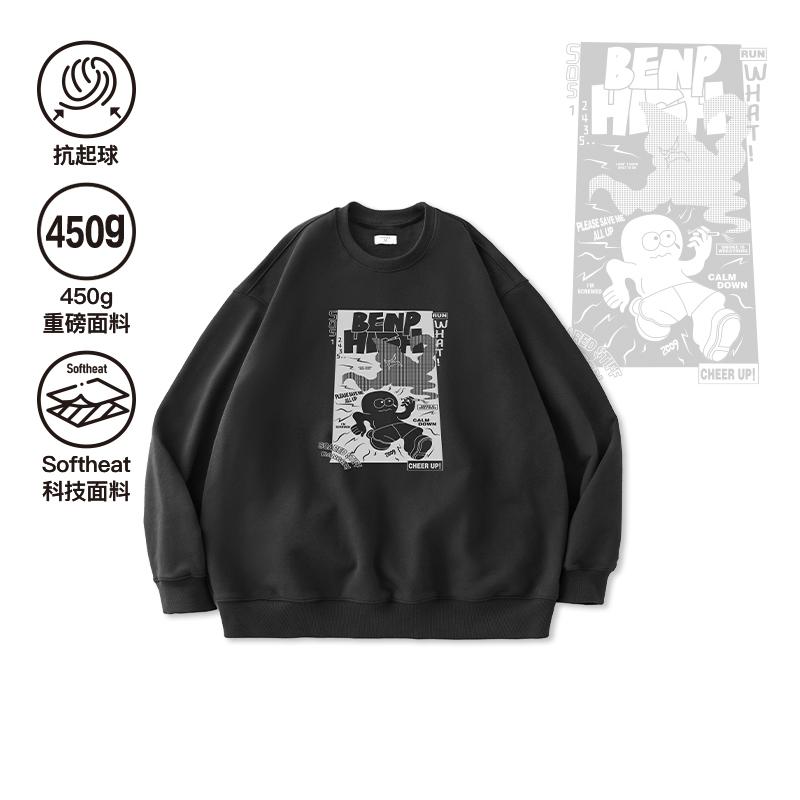 BENPANDA熊猫本 涂鸦印花圆领卫衣套头帽衫男女春季日系宽松上衣